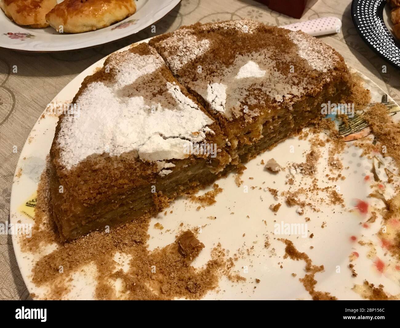 . Torta Medovik Медовик di origine Russa fatta con miele e noci. Divide the dough into 10 equal portions. 1 pahar de 200 gr zahăr pudră.